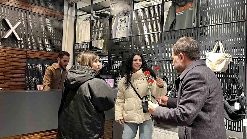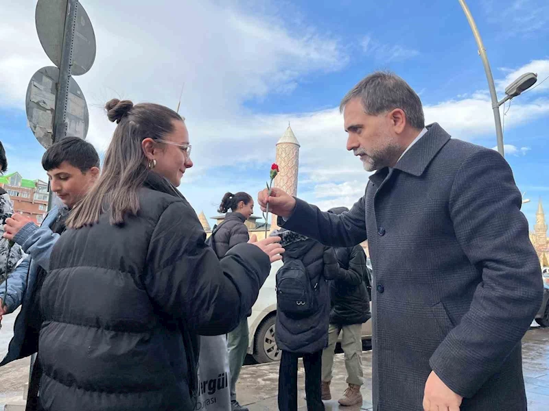 Yakutiye Belediye Başkanı Mahmut Uçar, Dünya Kadınlar Günü vesilesiyle, kent merkezinde kadınlara karanfil dağıttı.
