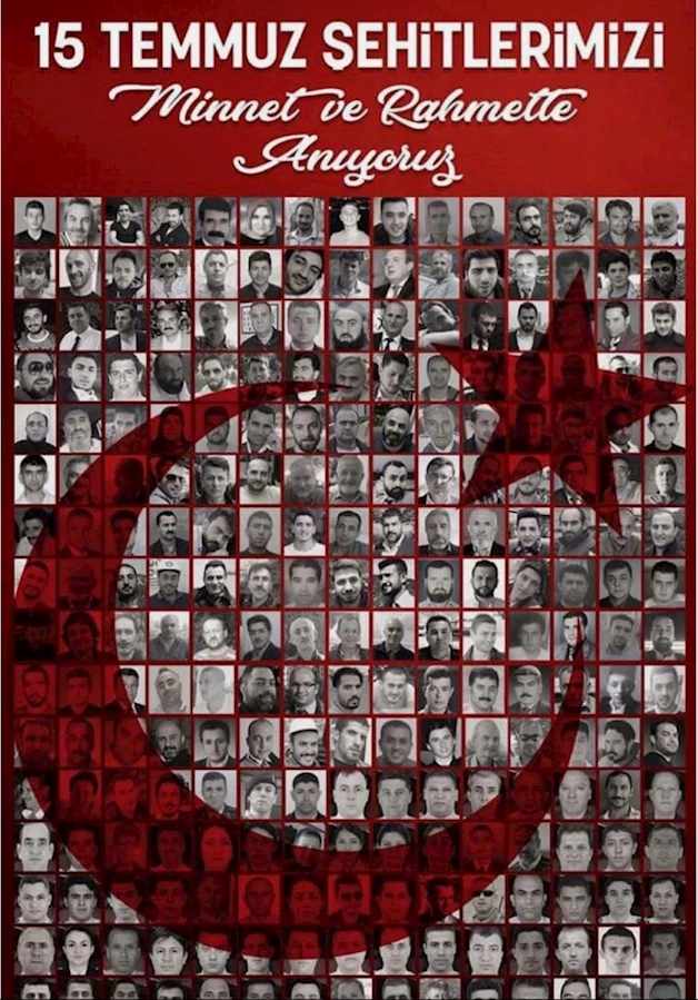 Görselde yer alan Türk bayrağı ve 15 Temmuz şehitlerinin fotoğraflarıyla oluşturulan kompozisyon, mesajın görsel gücünü artırırken, toplumsal hafızada derin bir iz bırakmayı da başarıyor.