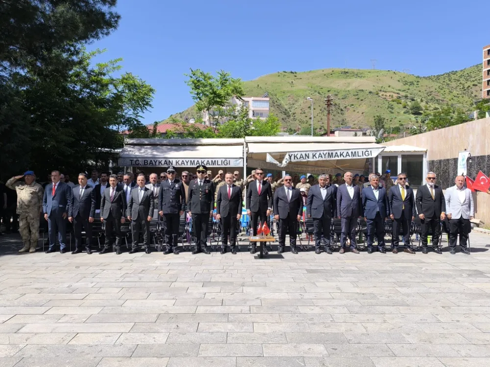 Programa; Baykan Kaymakamı Fatih Özcan, Cumhuriyet Savcısı Muhammed Ali Us, Baykan Belediye Başkanı Ekrem Erdem, İlçe Jandarma Komutanı Çağatay Acar, İlçe Emniyet Amiri Engin Dumlu, İlçe Milli Eğitim Müdürü Vahap Gülmez, Gençlik ve Spor İlçe Temsilcisi Barış Erdem, Şehit ve Gazi Aileleri Yardımlaşma ve Dayanışma Derneği Başkanı Cemal Sarıyer, AK Parti Baykan İl Genel Meclisi Üyesi Abdülkerim Güncü, MHP İlçe Başkanı İzzet Karadağ, CHP İlçe Başkanı Kadir Taşkın, İYİ Parti İlçe Başkanı Çetin Söyüncü, Esnaf ve Sanatkarlar Odası Başkanı Osman Gülümser, Ziraat Odası Başkanı Yusuf Tardu, www.siirthaberici.com Yönetim Kurulu Başkanı Şakir Erol, köy ve mahalle muhtarları, öğretmenler, öğrenciler, veliler ve çok sayıda vatandaş katıldı.