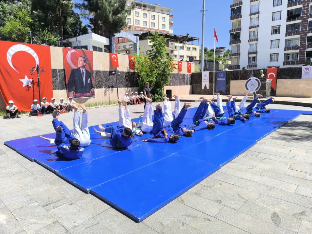 Saygı duruşu ve İstiklal Marşı’nın okunmasıyla başlayan programda, öğrenciler şiirler okudu, halk oyunları ve judo gösterileri sergilendi. Başkan Erdem, gençlerin coşkusuna ortak oldu ve gösterileri ilgiyle takip etti. Etkinlik, yarışmalarda dereceye giren öğrencilere ödüllerin verilmesiyle sona erdi.