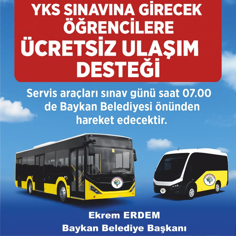 “Baykan Belediyesi olarak gençlerimizin her zaman yanında olduk. Sınav sabahı ücretsiz ulaşım desteğimizle bu dayanışmamızı sahaya da taşıyoruz. Gençliğin enerjisine, inancına ve geleceğine güveniyoruz.”