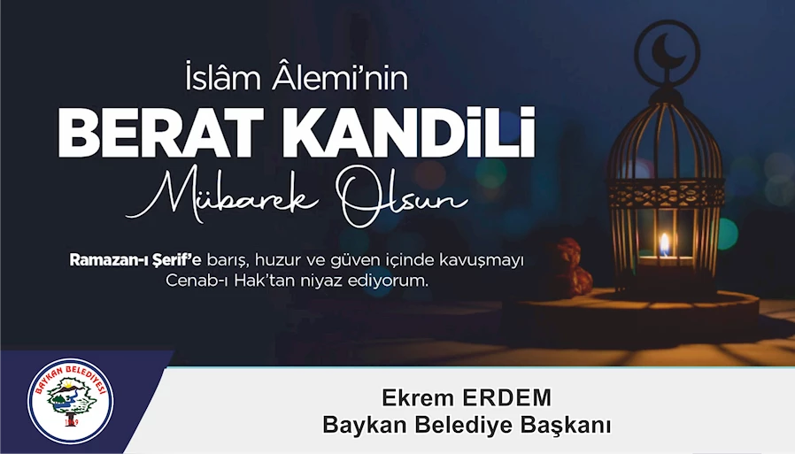 Baykan Belediye Başkanı Ekrem Erdem, Berat Kandili dolayısıyla bir mesaj yayımlayarak, 11 ayın sultanı Ramazan ayının müjdecisi Berat Kandili'nin Baykan'a, Türkiye'ye ve tüm insanlığa esenlik ve huzur getirmesini diledi. Ramazan ayının müjdecisi olarak kabul edilen Berat Kandili nedeniyle bir mesaj yayımlayan Baykan Belediye Başkanı Ekrem Erdem, rahmet ve mağfiret dolu mübarek Berat Kandili'ni bir kez daha idrak etmenin mutluluğu içerisinde olduklarını kaydetti. Berat Kandili'nin Cenab-ı Allah'ın kendisinden af dileyenleri bağışlayarak kurtuluş beratı verdiği önemli bir gece olduğuna dikkati çeken Başkan Erdem, şunları kaydetti: Kurtuluş, af ve arınma gecesi olan Berat Kandilimiz, bizlere manevi bir nefes aldırma, kendimizi sorgulama ve gönül dünyamızı temizleme fırsatı sunar. Bu vesileyle bu mübarek gece tüm İslam alemi için önemli bir fırsattır. Bu mübarek gecede dargınlıkları ve küskünlükleri unutmalı, nefsimizle yüzleşip, hata ve günahlarımız için Yüce Allah'tan af dilemeliyiz. Bu duygu ve düşüncelerle, tüm Baykanlı hemşehrilerimin Berat Kandili'ni tebrik ediyor, bu mübarek gecenin birlik ve beraberliğimizi daha da güçlendirmesini, ülkemize ve tüm insanlığa esenlik ve huzur getirmesini temenni ediyorum. Dedi.