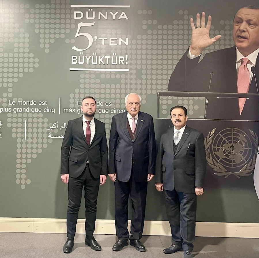 Gönderiye eşlik eden fotoğrafta, Mekan Görük ve beraberindeki heyet, “Dünya 5’ten Büyüktür!” temalı arka fonda Cumhurbaşkanı Recep Tayyip Erdoğan’ın portresi önünde poz verirken görülüyor. Bu görüntü, birlik ve kararlılık mesajı olarak yorumlandı.