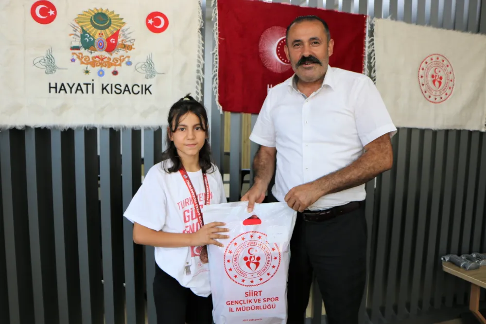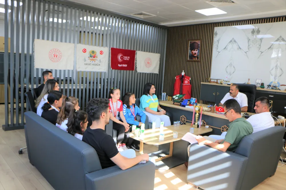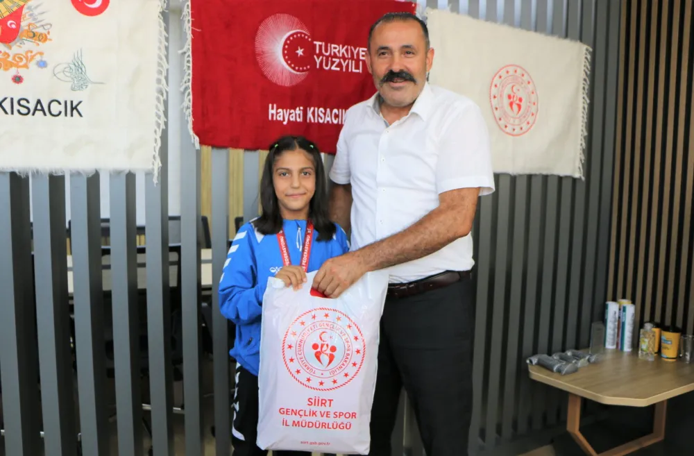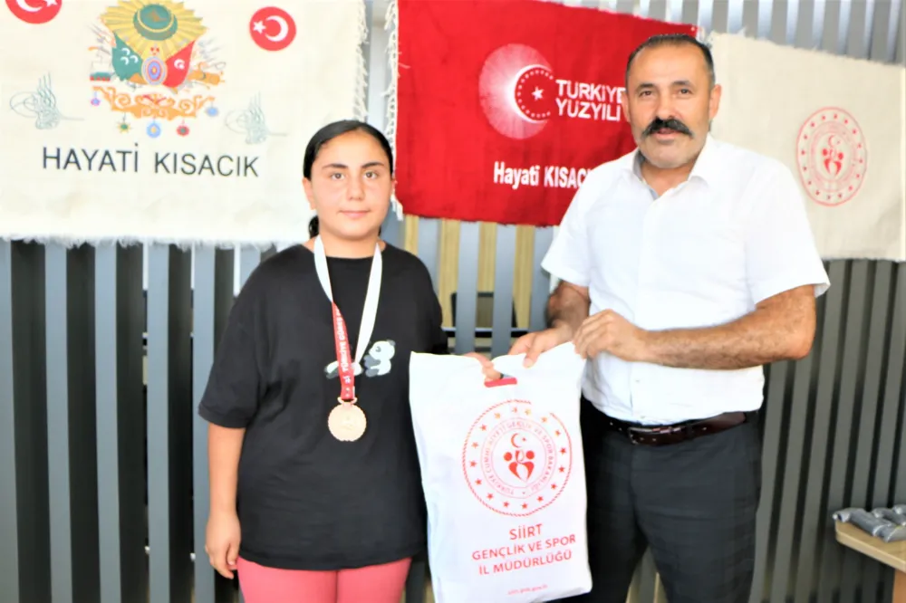 22-23 Temmuz 2024 tarihlerinde Başkent Ankara da düzenlenen U11-U13 Kadınlar Türkiye Güreş Şampiyonasında 33 kg’da 1.nci olan Damla Beyan, 39 kg’da 2.nci olan Hayrunisa İlbaş, 33 kg’da 2.nci olan Mercan Nas, 33 kg’da 3.ncü olan Elif Tuncer ve 73 kg’da 3.ncü olan Rojbin Oğuz, antrenörleri Şenay Kaya ve Pınar Ünal ile beraber Siirt Gençlik ve Spor İl Müdürü Hayati Kısacık’ı ziyaret ettiler.