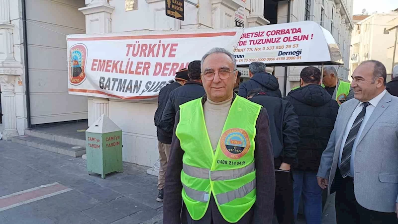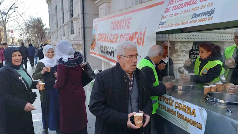Batman’da hayırseverler tarafından iki aydır süren ücretsiz çorba ikramına, Batman Emekliler Derneği de 2 bin kişilik katkı sağladı.
