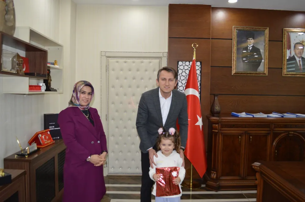 Baykan’da eğitim gören ADEM Anasınıfı öğrencileri, öğretmenleri eşliğinde Kaymakam Fatih Özcan’ı makamında ziyaret etti. Minik öğrenciler, sıcak ve samimi bir ortamda gerçekleşen ziyarette Kaymakam Özcan’a çiçek takdim ederek kendisiyle sohbet etme imkânı buldu. Kaymakam Özcan, öğrencilerle yakından ilgilenerek onların sorularını yanıtladı ve eğitimin erken yaşta başlamasının önemini belirtti. Minik misafirlerine çeşitli hediyeler veren Kaymakam Özcan, onların neşeli halleri ve samimi sohbetleriyle renkli anlara tanıklık etti. Ziyaretten duyduğu memnuniyeti dile getiren Kaymakam Özcan, ADEM Merkezi Koordinatörü Çiçek Okal’a ve görev yapan öğretmenlere emeklerinden dolayı teşekkür etti.