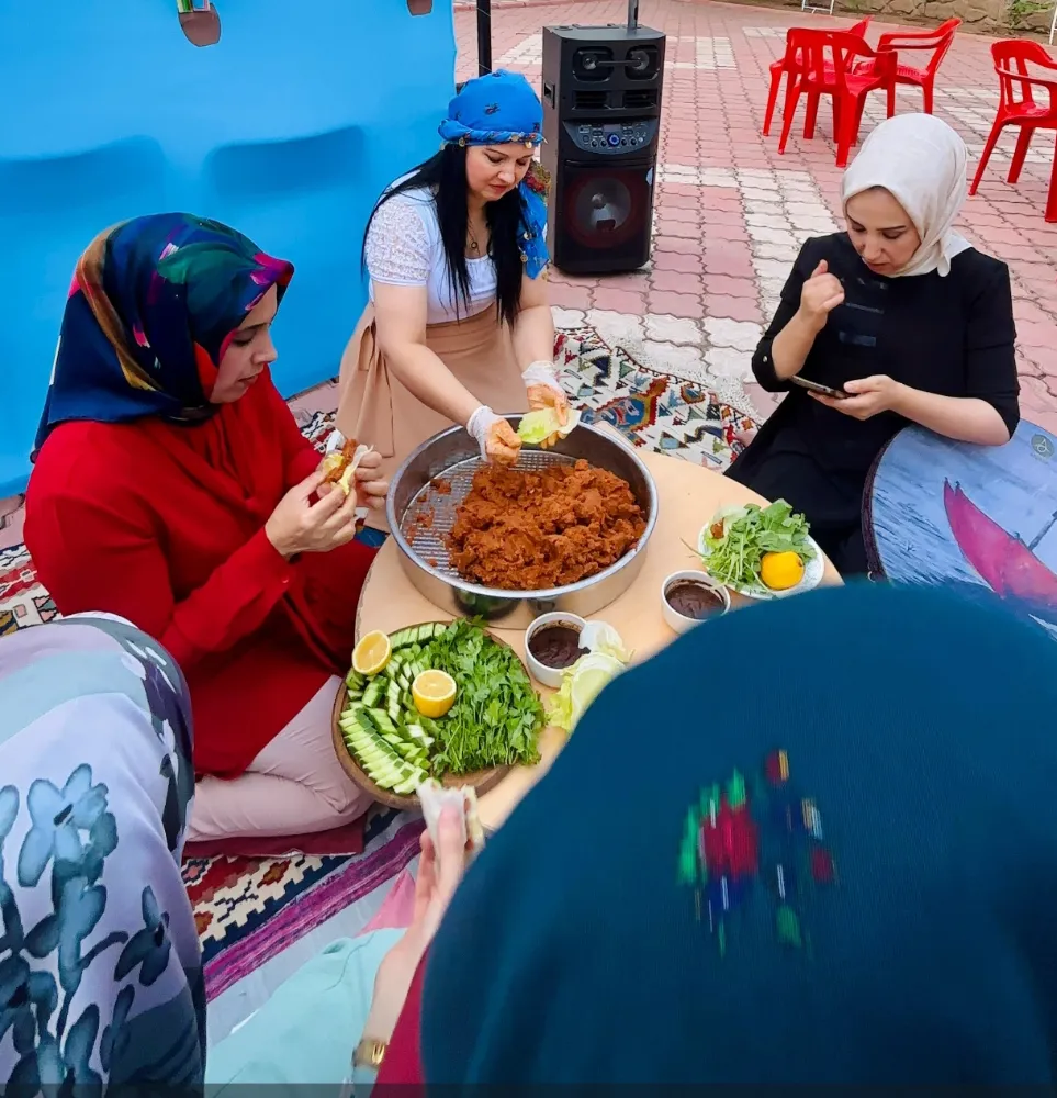 Bu kapsamda, ADEM bünyesindeki kursiyerlerle çiğ köfte yoğurma etkinliği düzenlendi.
