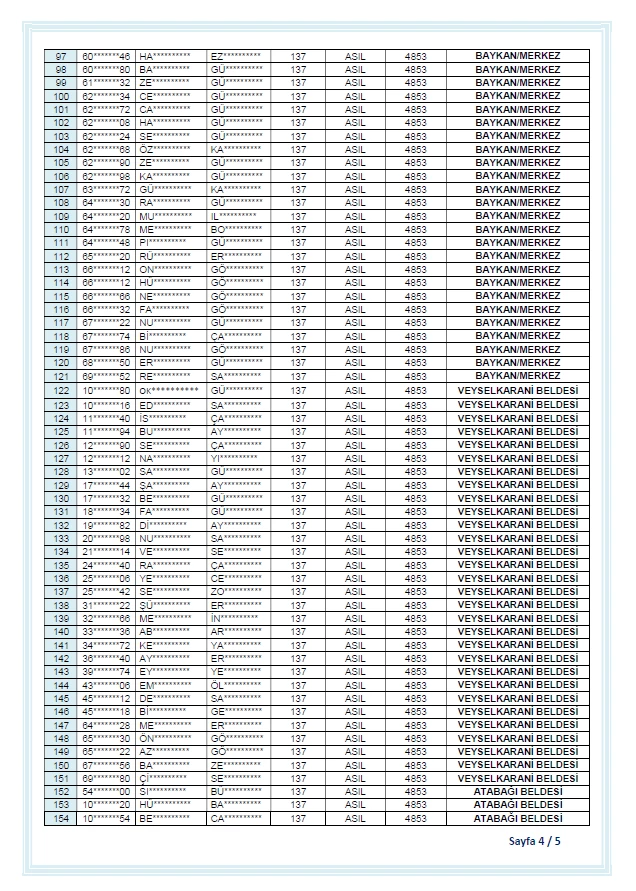 Siirt’in Baykan ilçesinde çalıştırılmak üzere 2025 Yılı İşgücü Uyum Programı (İUP) Kapsamında işe alınacakların listesi aşağıdaki gibidir.
