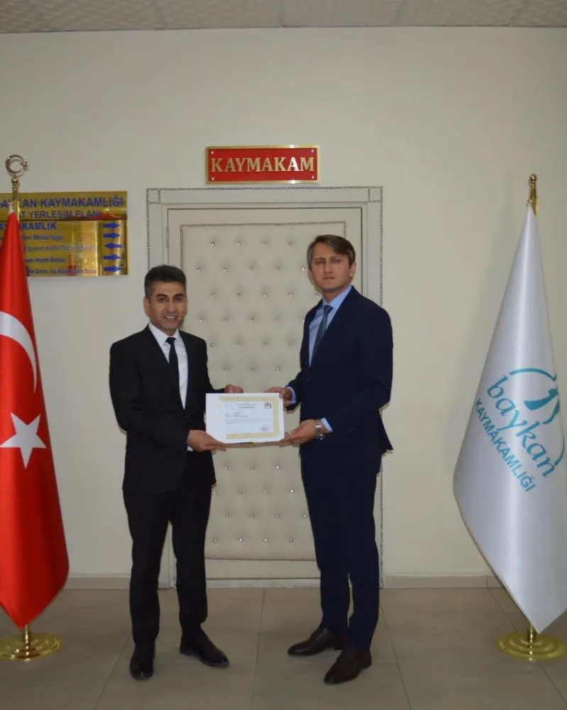 Baykan Kaymakamı Sayın Fatih Özcan, 2024-2025 eğitim-öğretim yılı süresince görevlerini özveriyle yerine getiren ve üstün başarı gösteren İlçe Milli Eğitim Müdürlüğü personelini başarı belgesi ile ödüllendirdi.