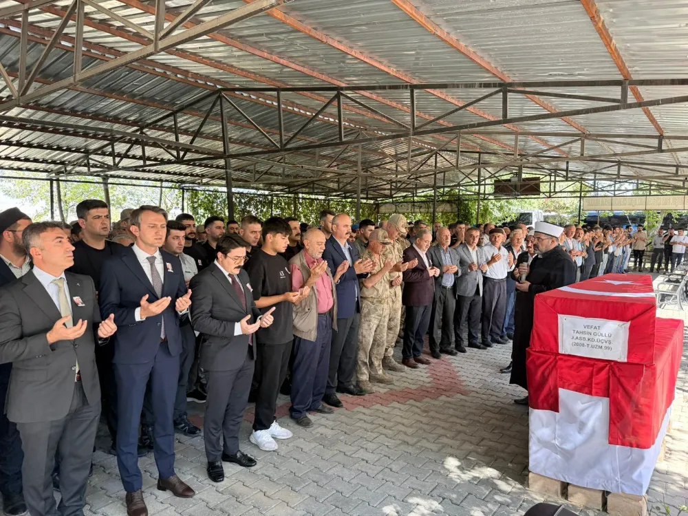 Kaymakam Fatih Özcan, “Aziz vatan evladımız J.Asb. Kd. Üçvş. Tahsin Güllü’yü rahmetle anıyor, kıymetli ailesine, silah arkadaşlarına ve kahraman Jandarma Teşkilatımıza başsağlığı diliyorum” ifadelerini kullandı.