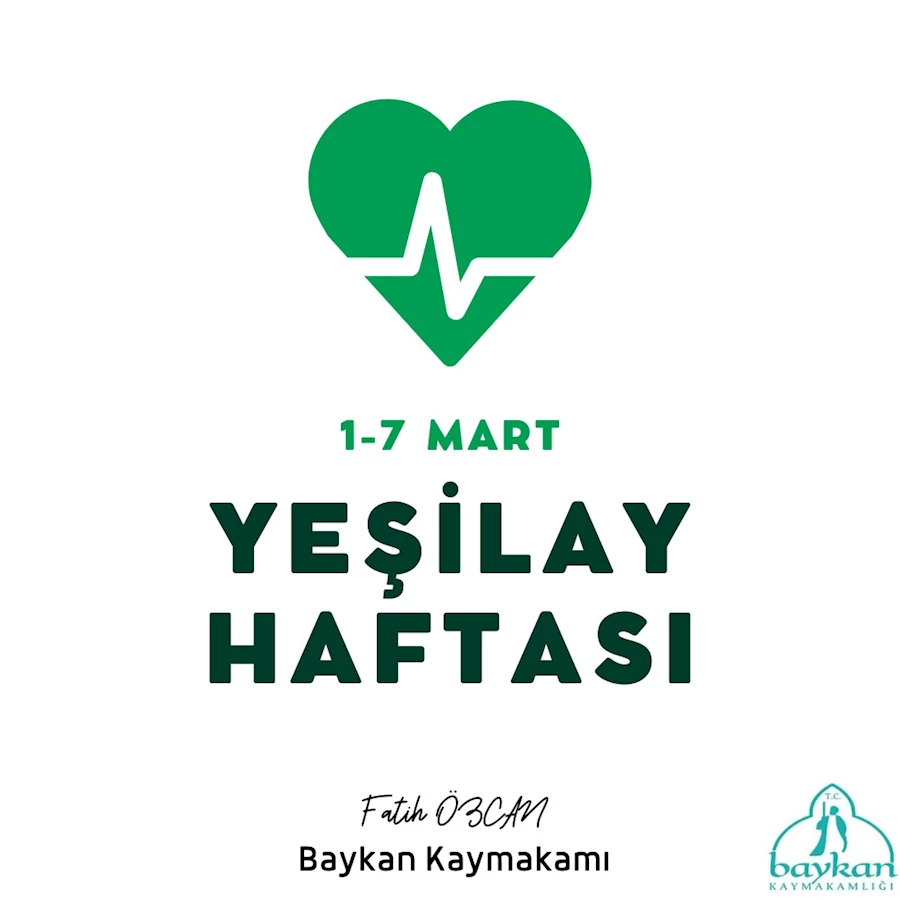 Baykan Kaymakamı Fatih Özcan, Yeşilay haftası dolayısıyla bir mesaj yayımladı.