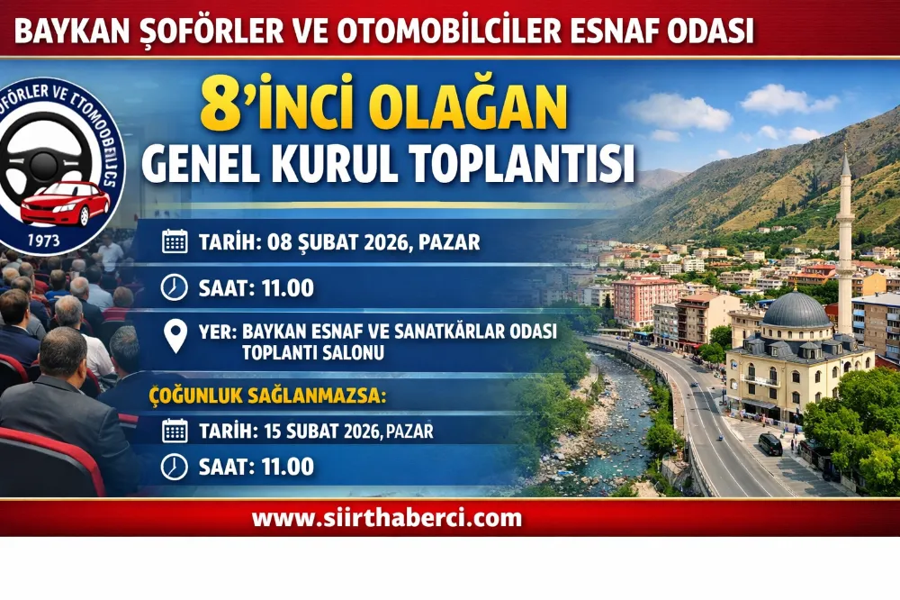 Baykan Şoförler ve Otomobilciler Esnaf Odası 8’inci Olağan Genel Kurul Toplantısı İlanı