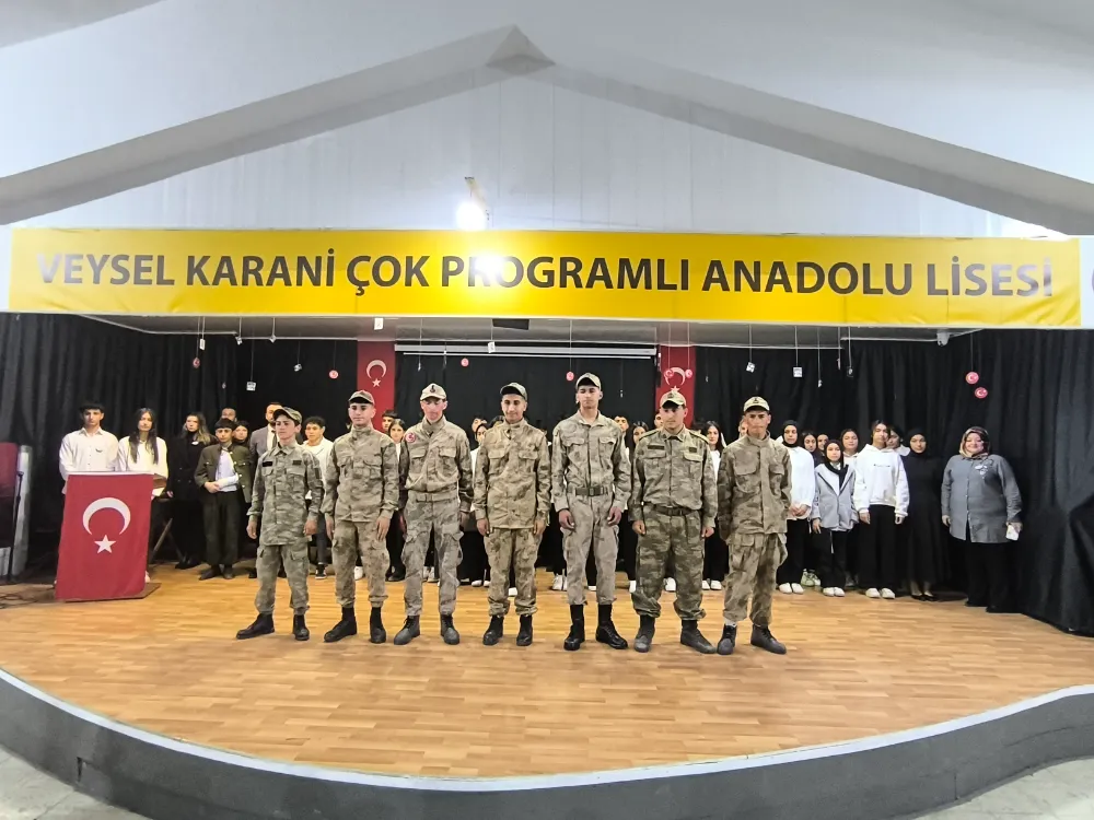 Veysel Karani Çok Programlı Anadolu Lisesi Öğretmen ve Öğrencileri tarafından hazırlanan anma töreni saygı duruşu ve İstiklal Marşı’nın okunması ile başladı. Günün anlamına ilişkin yapılan konuşmaların ardından, öğrenciler tarafından sergilenen orotoryo ve tiyatro gösterileri ile türkü dinletileri salonda duygusal anların yaşanmasına sebep oldu ve izleyiciler tarafından büyük bir beğeni toplayarak coşkuyla alkışlandı. Veysel Karani Çok Programlı Anadolu Lisesi Konferans Salonunda'ki tören şiir, kompozisyon ve resim dallarında dereceye giren öğrencilere ödüllerinin verilmesi ile sona erdi.