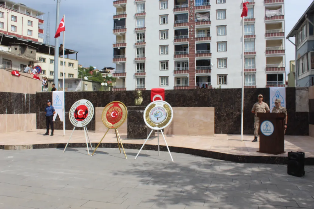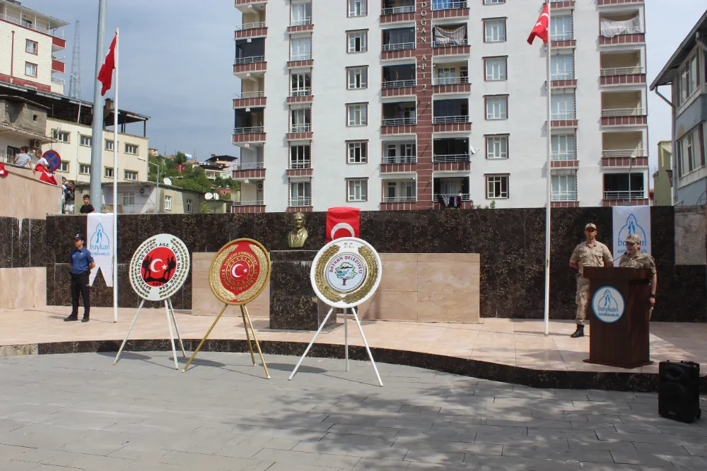 Çelenklerin sunulmasının ardından saygı duruşunda bulunuldu ve İstiklal Marşımız okundu. Günün anlam ve önemine istinaden gerçekleştirilen konuşmanın ardından tören sona erdi.