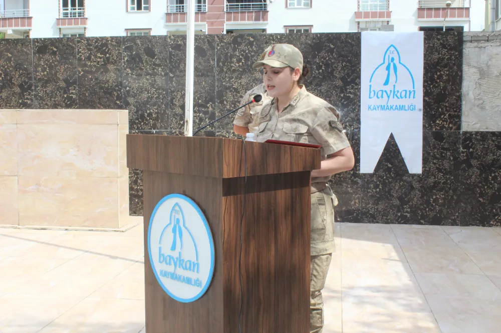 19 Eylül Gaziler Günü dolayısıyla Baykan’da düzenlenen çelenk sunma töreni, Kurtalan Kaymakamı / Baykan Kaymakamı vekili Samet Serin’in katılımıyla gerçekleştirildi. Şehit Jandarma Asb. Yakup Akdağ Parkı'nda düzenlenen tören; Kurtalan Kaymakamı / Baykan Kaymakam Vekili Samet Serin , Baykan Belediye Başkanvekili Bahattin Erdal, Şehit Aileleri ve Gaziler Derneği Başkanı Cemal Sarıyer’in çelenk sunmasıyla başladı.
