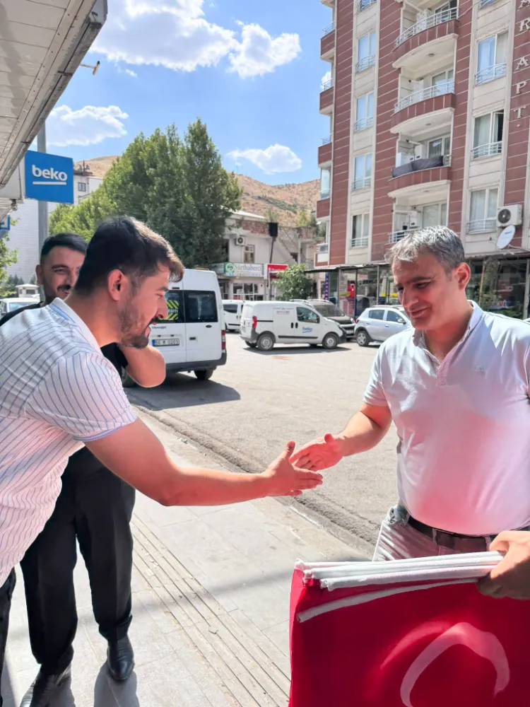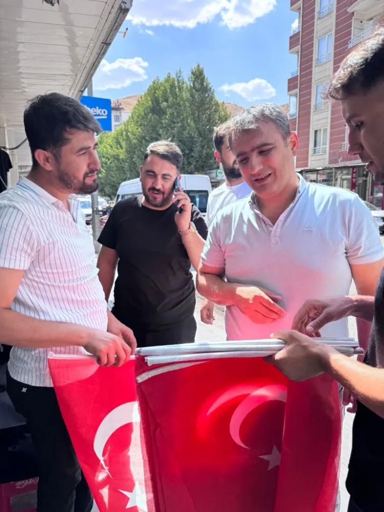 Baykan’da birlik ve kardeşlik ruhunu daha da güçlendirmek amacıyla yürütülen çalışmalarda, Ak Parti Baykan İlçe Gençlik Kolları Başkanı Seyyid Yusuf Erol öncülüğünde yüzlerce bayrak vatandaşlara dağıtıldı. Kampanya kapsamında esnaf, hane sahipleri ve gençler bayraklarını camlarına, balkonlarına ve dükkânlarına gururla astı.