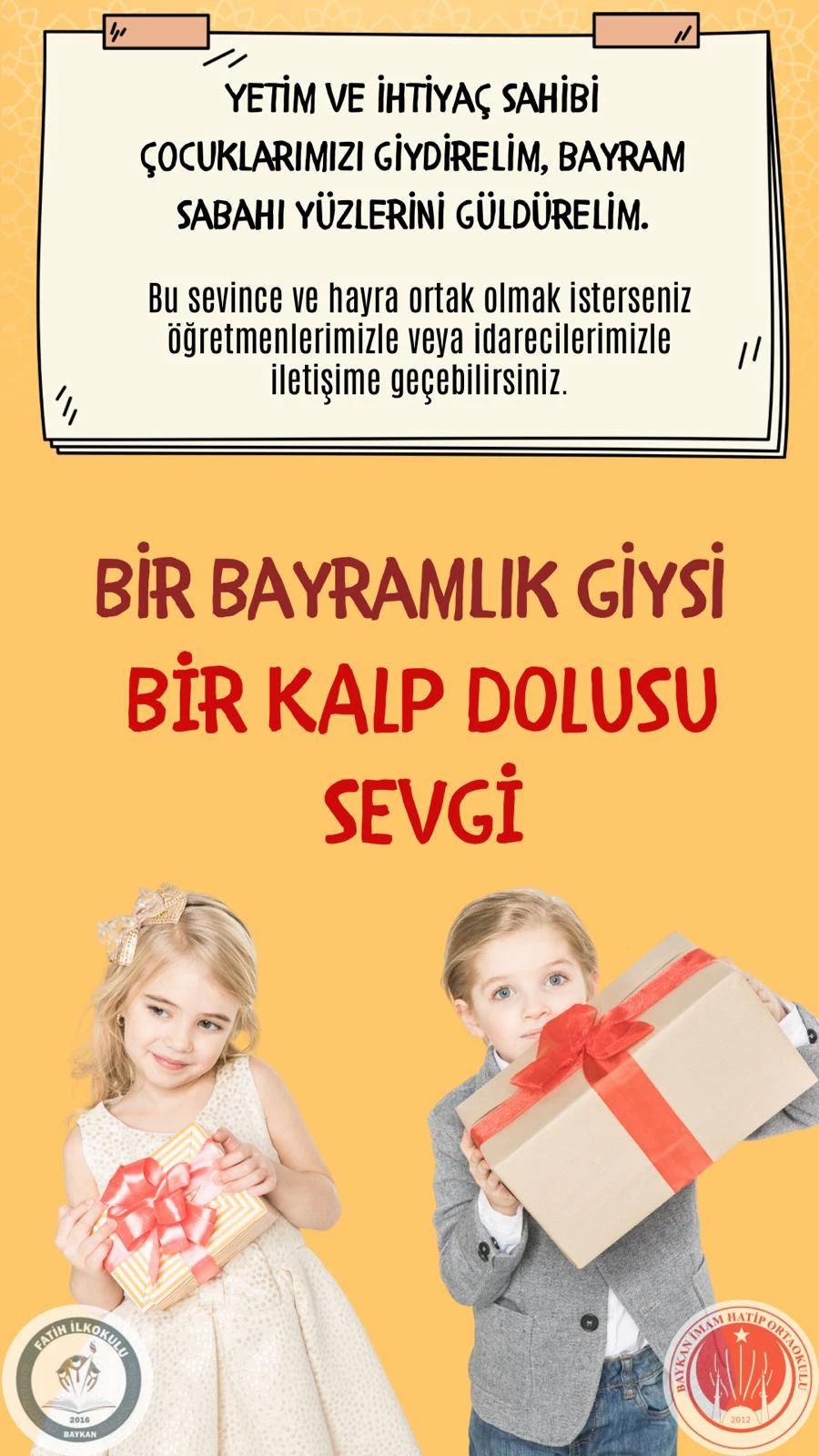 Baykan’da bulunan Fatih İlkokulu ve Baykan İmam Hatip Ortaokulu öğretmenleri öncülüğünde başlatılan "Bayram Sevincini Tüm Çocuklar Yaşasın" Yetim ve Muhtaç Çocukları Giydirme Projesi ile binlerce çocuk bayramı sevinçle karşılaya
