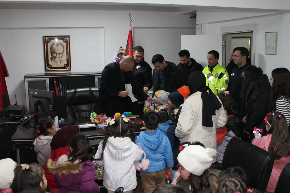 Samimi ve sıcak yaklaşımıyla miniklerin gönlünü kazanan Dumlu ve emniyet personeli, ziyaret boyunca öğrencilerle yakından ilgilenerek örnek bir ev sahipliği sergiledi.