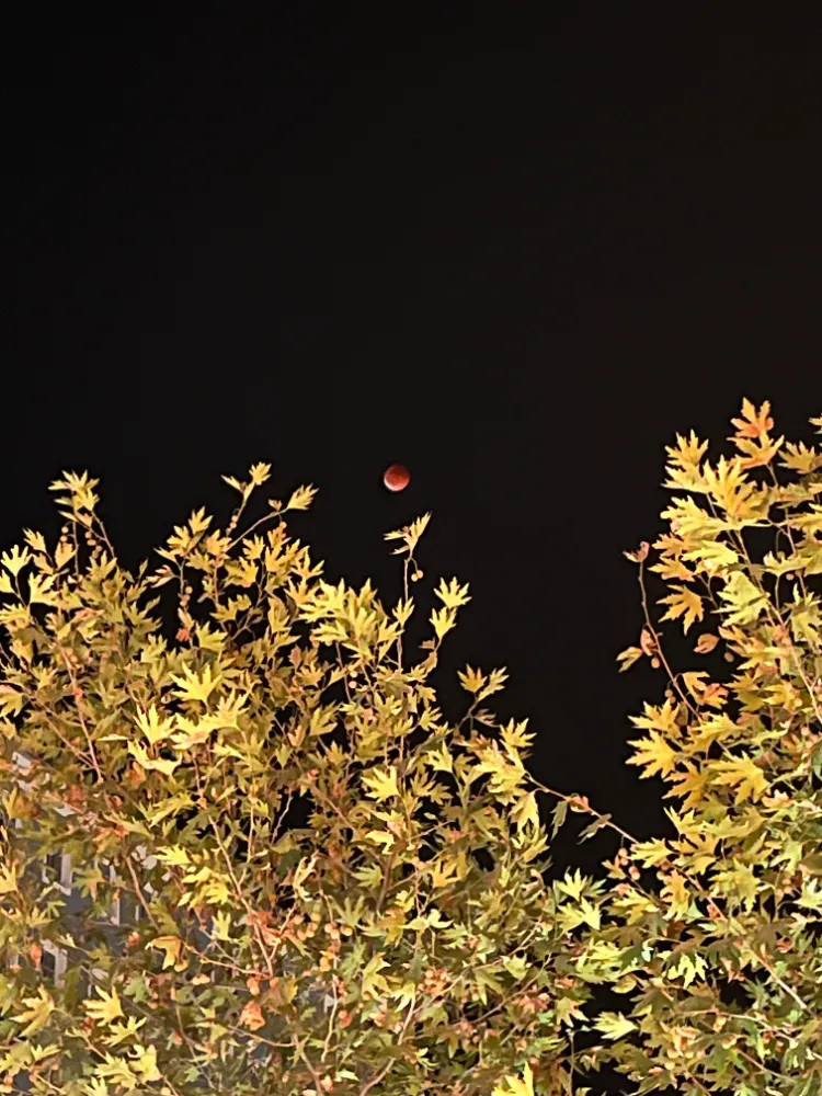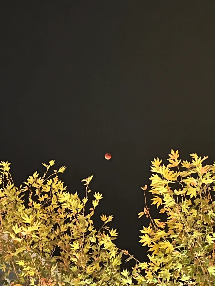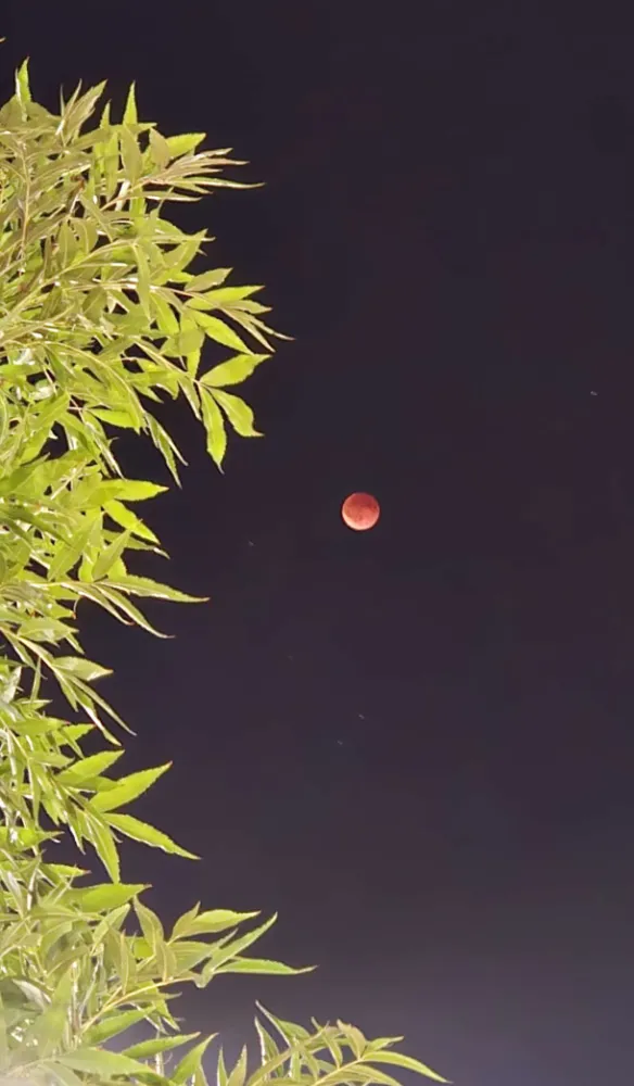 Baykan’ın farklı noktalarından çekilen fotoğraflarda, kırmızıya dönen Ay’ın ihtişamı ağaç dallarıyla birleşerek tabloyu andıran görüntüler oluşturdu.