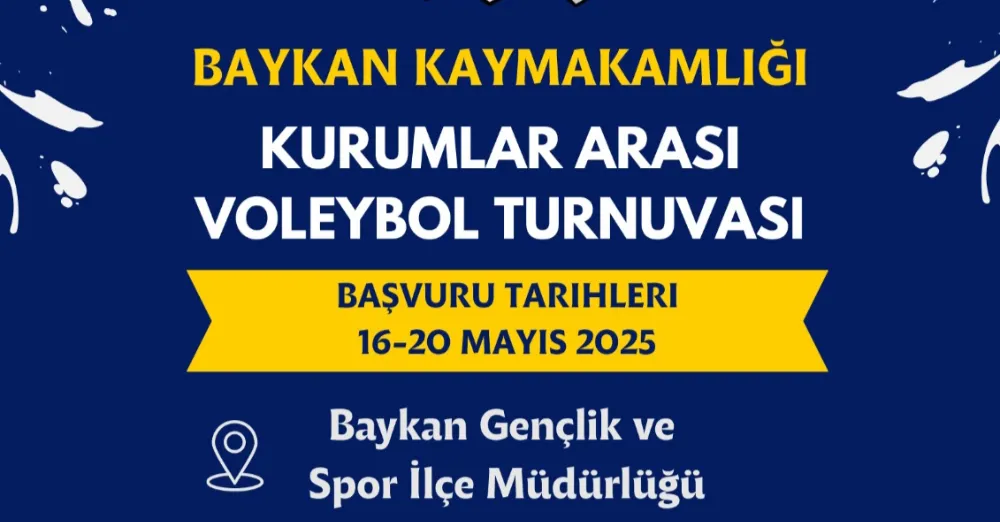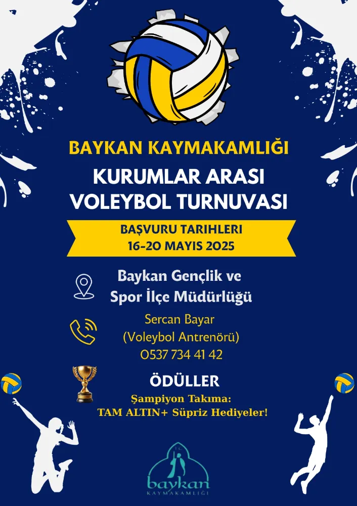 Baykan Kaymakamlığı tarafından organize edilen ve ilçedeki kurumlar arasında dostluk, dayanışma ve sportif rekabeti artırmayı amaçlayan Kurumlar Arası Voleybol Turnuvası için başvurular başlıyor. Geçtiğimiz yıllarda büyük ilgi gören turnuva, bu yıl da eğlenceli ve çekişmeli müsabakalara sahne olacak.