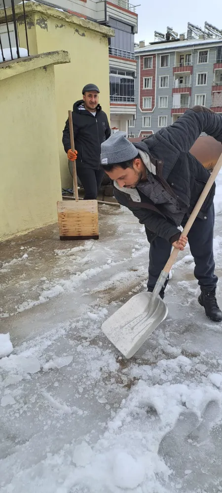 Baykan ilçesinde Şafii Erkek Kur’an Kursu’nda görev yapan yöneticiler ve hocalar, yoğun kar yağışının ardından kurs binasının damında biriken kar kütlelerini el birliğiyle temizleyerek olası tehlikelerin önüne geçti.