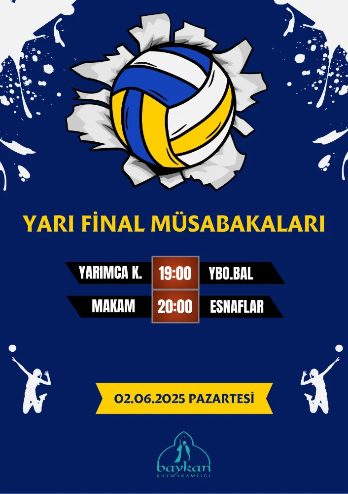 2 Haziran 2025 Pazartesi günü oynanacak yarı final müsabakaları, ilçede sporun coşkusunu zirveye taşıyacak.