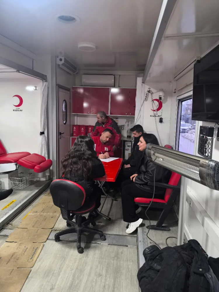 Mobil kan bağışı aracında görevli sağlık ekipleri, bağış öncesi ve sonrası bilgilendirme yaparak vatandaşların süreci bilinçli şekilde tamamlamasını sağlıyor.