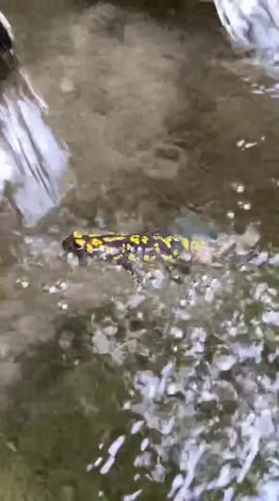 Elazığ’ın Palu ilçesi Beyhan beldesinde bir vatandaş, çeşmenin oluğunda nadir görülen sarı benekli semenderi fark etti. Ardından cep telefonunu çıkaran şahıs, olukta yüzen semenderi uzun süre görüntüledi.