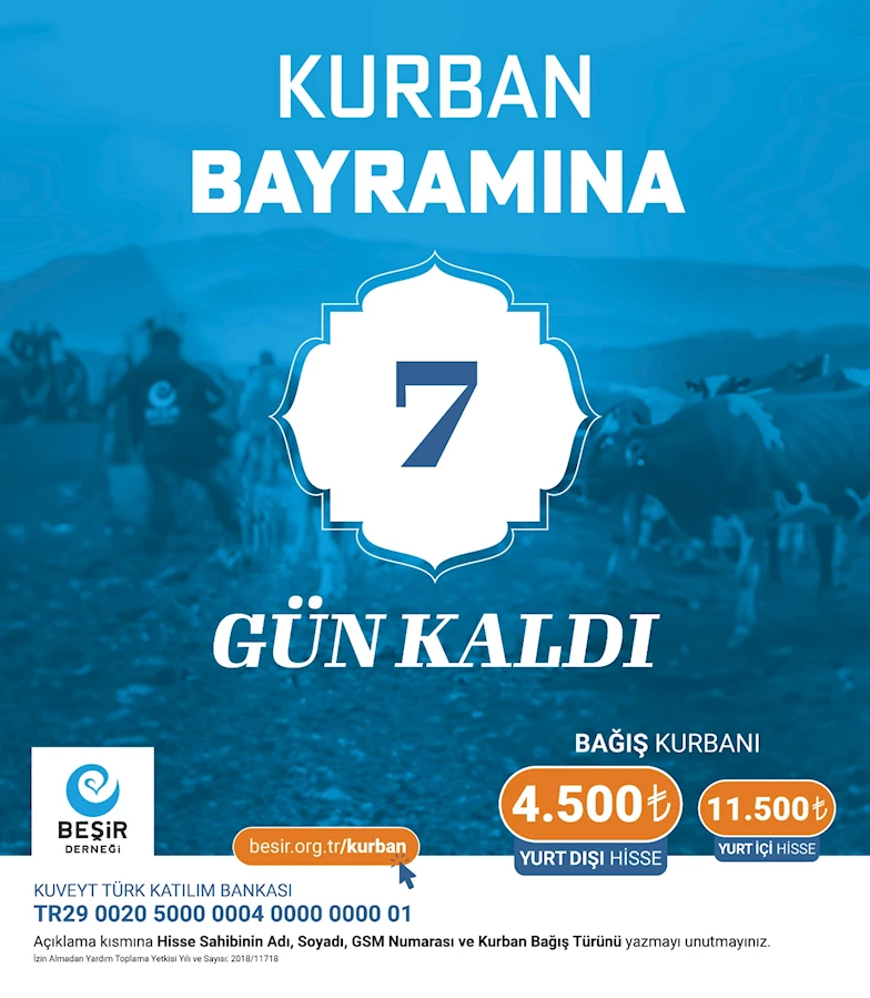 Beşir Derneğinden Hatırlatma! Kurban Bayramı'na Son Bir Hafta!