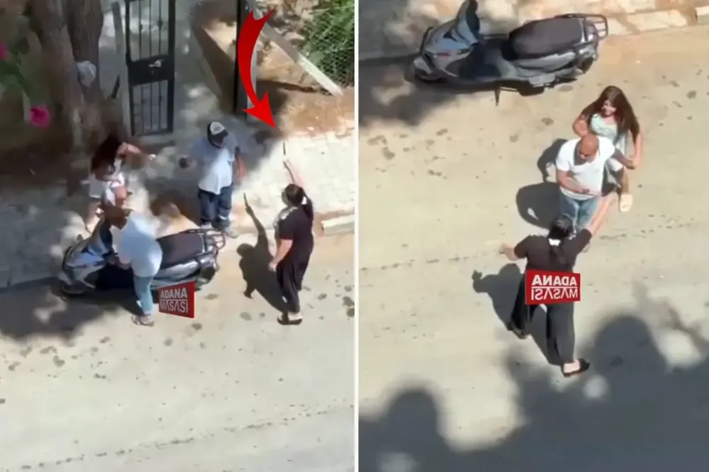 Gözyaşları içinde annesinden kaçan küçük kızın feryatları sokağı inletti. Kadını bir türlü sakinleştiremeyen adam, küçük kızı motoruna bindirerek oradan uzaklaştırdı. Olay bir kişinin cep telefonu kamerasına yansıdı.