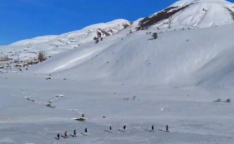 Bingöl’de göl buz tuttu, doğaseverler üzerinde yürüdü