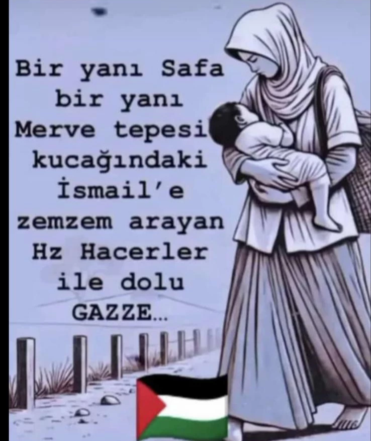 Safa ile Merve arasında koşarken susuzluğa çare arayan Hz. Hacer’in hikâyesi, bugün Gazze’nin dar sokaklarında, enkaz altlarında, çadır kentlerde yeniden yazılıyor. Her annenin kucağında bir İsmail var; ve her annenin gözlerinde umutsuzca aranan bir “zemzem”…