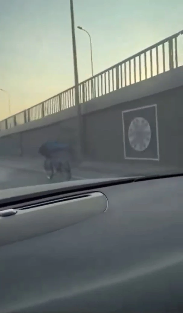 Şahıs, bir o şekilde yol aldıktan sonra normal sürüşe geçerek gözden kayboldu.