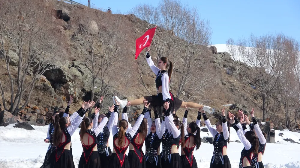 Türkiye Artistik Buz Pateni milli takım sporcuları 8 Mart Dünya Kadınlar günü dolayısıyla Çıldır Gölü üzerinde gösteri gerçekleştirdi.
