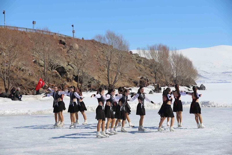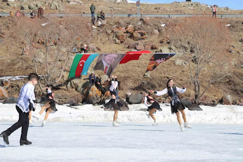 Çıldır Gölü’nde nefes kesen senkronize buz pateni gösterisi