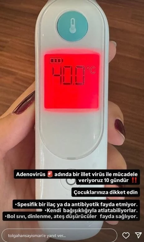 Oyuncu Tolgahan Sayışman, çocuklarının adenovirüse yakalandığını sosyal medya üzerinden duyurarak, virüsle geçen zorlu günleri paylaştı. Sayışman, adenovirüsün ciddi belirtiler gösterdiğini ve antibiyotik tedavisinin etkili olmadığını vurgulayarak aileleri dikkatli olmaya çağırdı.