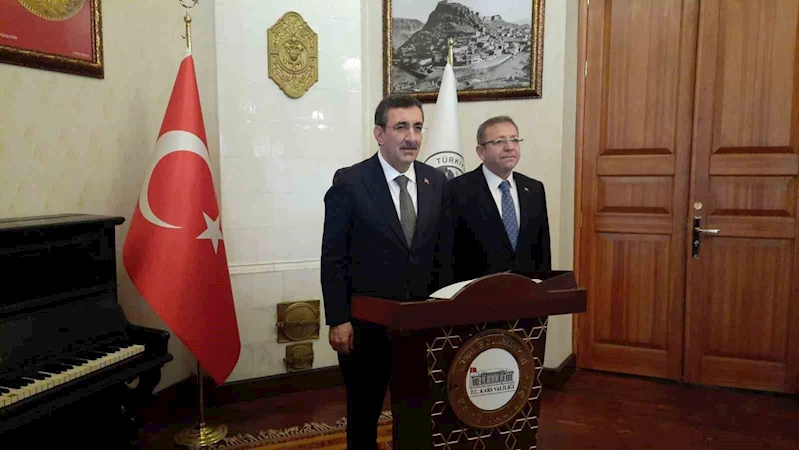 Cumhurbaşkanı Yardımcısı Cevdet Yılmaz, bir takım ziyaretlerde bulunmak üzere Kars’a geldi. Yılmaz, ilk olarak Kars Valiliği’ni ziyaret etti. Yılmaz, valilik şeref defterini imzaladı. Vali Ziya Polat’tan brifing aldı.