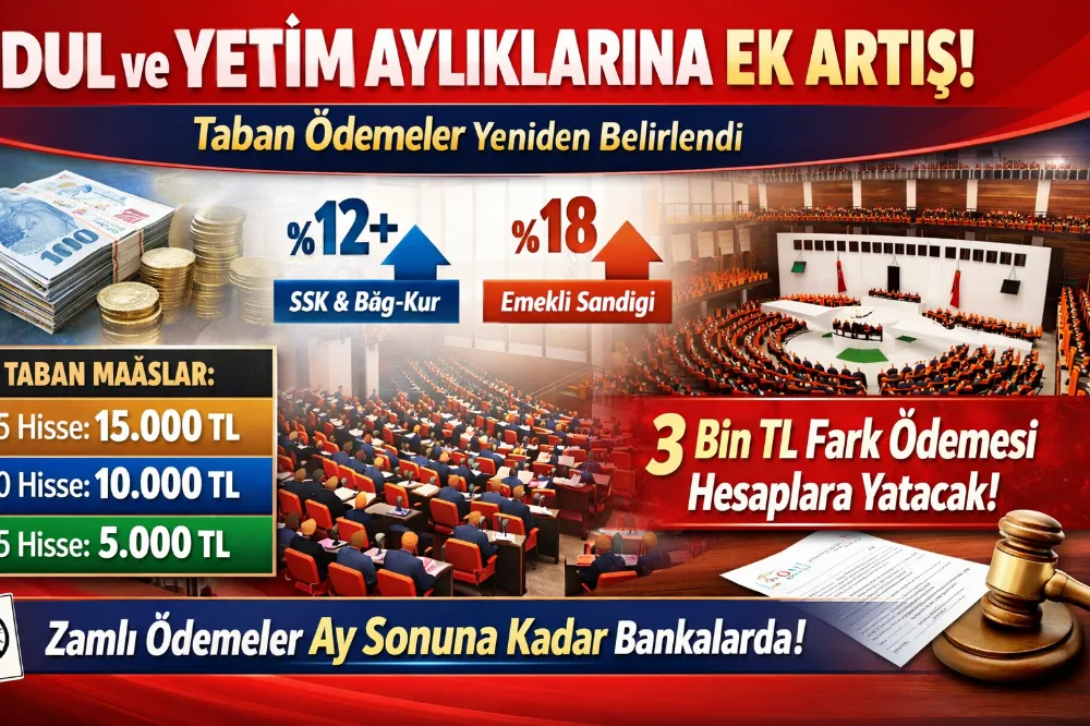 Yapılan bu düzenleme ile birlikte, milyonlarca dul ve yetim vatandaşın gelirinde artış sağlanırken, yeni taban maaş uygulamasıyla ödemelerde daha dengeli bir yapı hedefleniyor.