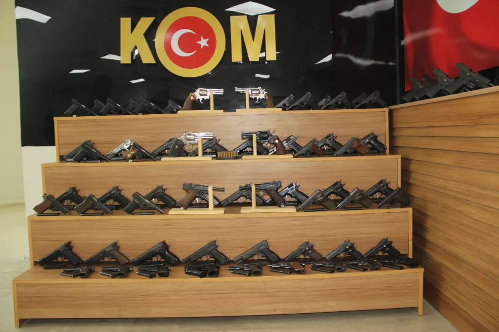 Şanlıurfa'da polis ekipleri tarafından durdurulan otomobilin motor kısmındaki çuvallarda 65 adet ruhsatsız tabanca ile çok sayıda şarjör ve mermi çıktı. Ele geçirilenler arasında İkinci Dünya Savaşı'nda kullanılan silahlar da bulunuyor.