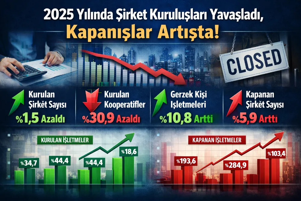2025 yılına ilişkin şirket kuruluş ve kapanış verileri, ekonomide temkinli bir seyrin öne çıktığını ortaya koydu. Açıklanan istatistiklere göre, kurulan şirket sayısında sınırlı düşüş yaşanırken, kapanan şirket sayısındaki artış dikkat çekti.