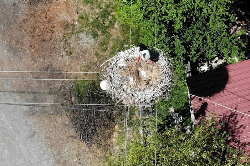 Baharın müjdecisi kabul edilen leylekler, yuvalarına dönüşleriyle köy ahalisini yeniden sevindirdi. Erzincan’ın Mertekli köyünde 22 yıldır aynı elektrik direğinin üzerine yuva yapan leylek ailesinden anne leylek kuluçkaya yattı.