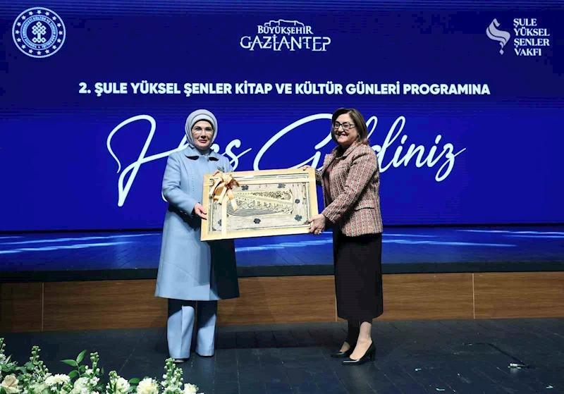 Emine Erdoğan, "Şule Yüksel Şenler’in hatırasının, kitapseverleri bir araya getiren bu etkinlikte yaşatılmasını çok kıymetli buluyorum. Şule Yüksel Şenler Vakfını, büyük emekleri için kutluyor, Gaziantep Büyükşehir Belediyemize şükranlarımı sunuyorum" şeklinde konuştu.