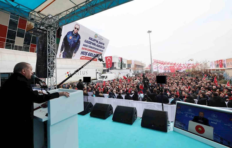 Erdoğan, "Bugün Malatya’da, 11 ilimizde yapımı tamamlanan 201 bininci yuvanın anahtarlarını teslim etmenin heyecanını yaşıyoruz. 6 Şubat depremlerinin yaralarını sarmaya devam ediyoruz. Geçtiğimiz Kasım ayında Kahramanmaraş’ta 155 bin yuvanın anahtarlarını teslim etmiştik. Söz verdiğimiz üzere, 2024 yılı sonu itibariyle konutlarımızın yüzde 40’ını tamamlamış durumdayız. Bugün de 201 bin yuvanın anahtarlarını teslim ediyoruz. Bu yuvaların her biri, yeniden daha güçlü bir Anadolu idealimizin bir parçasıdır ve milletimizle olan dayanışmamızın en güzel örneğidir” dedi.