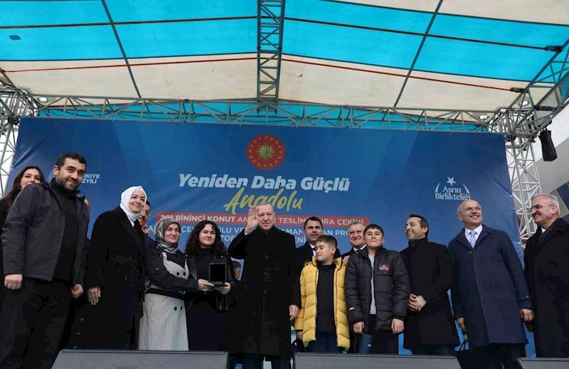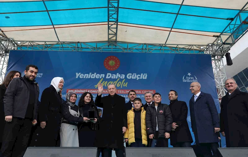 Cumhurbaşkanı Erdoğan, Malatya’da düzenlenen törende depremzedelere 201 bininci konutun anahtarını teslim etti. Erdoğan, 2025 yılı sonuna kadar deprem bölgelerinde toplamda 452 bin 983 bağımsız bölümün hak sahiplerine verileceğini açıkladı.