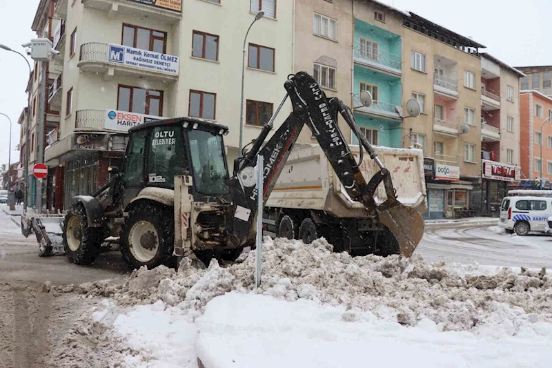 Oltu Belediyesi karla mücadele ekipleri, ilçe merkezinde kar temizleme çalışmalarına başladı. Vatandaşlar, "Ne kadar kar yağarsa yağsın, önümüz bahar. Bu kadar yoğunluğun büyük bir etkisi olacağını düşünmüyoruz," diyerek, havaların ısınmasıyla karın etkisinin azalacağına inandıklarını belirttiler.