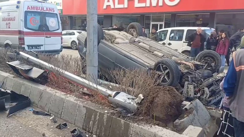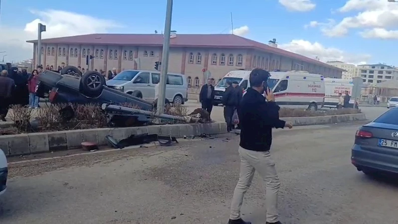 Erzurum’da meydana gelen bir trafik kazasında araç takla attı, araç bulunan şahıslar yaralandı.
