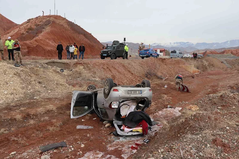 Erzurum’da meydana gelen kazada otomobil şarampole yuvarlandı, iki kişi yaralandı.