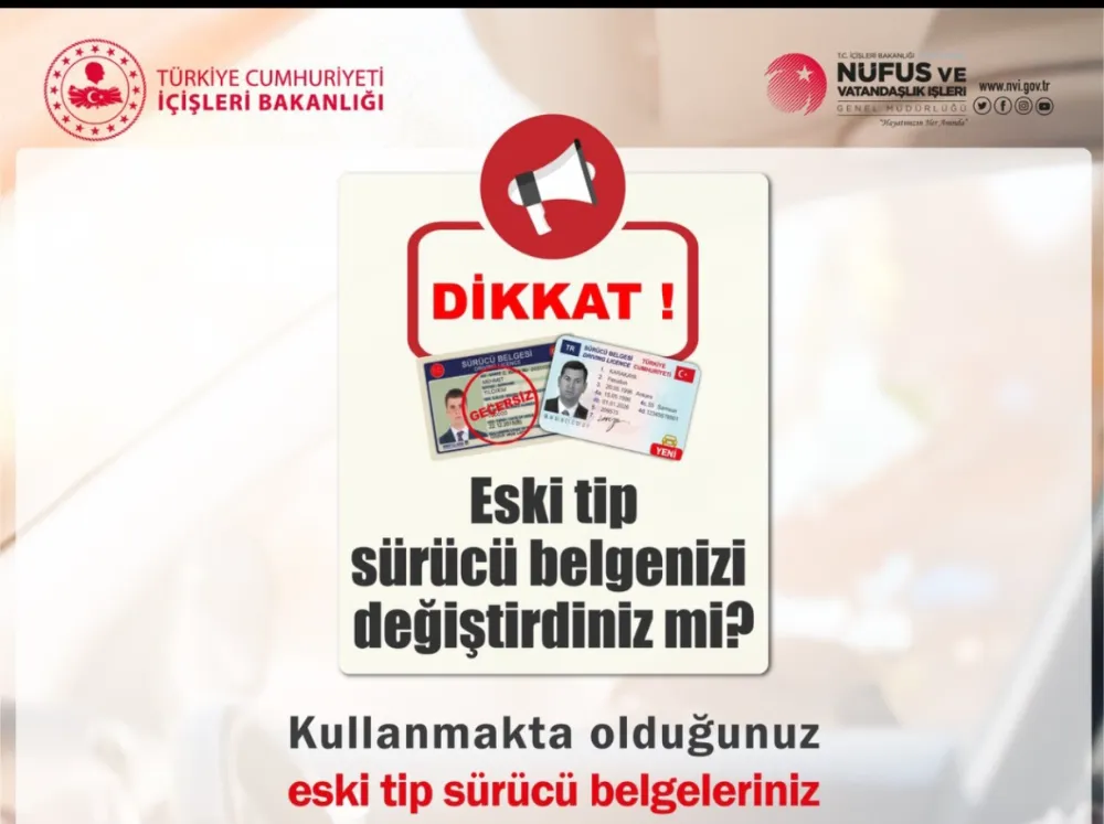 İçişleri Bakanlığı, eski tip sürücü belgesi kullanan vatandaşları uyardı.