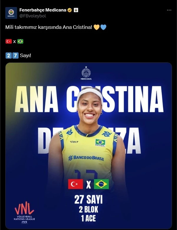 Maç sonrası, Fenerbahçe Kadın Voleybol Takımı'nın X (Twitter) hesabından, mücadelede 27 sayı üreten Ana Cristina için bir kutlama mesajı paylaşıldı. Ancak bu tebrik, sosyal medya kullanıcılarının tepkisini çekti.