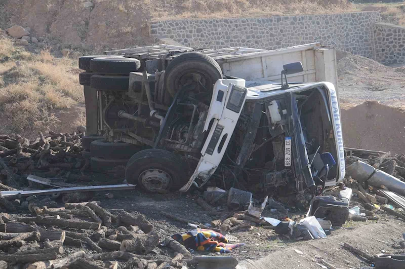 Freni boşalan odun yüklü kamyon şarampole devrildi: 2 yaralı